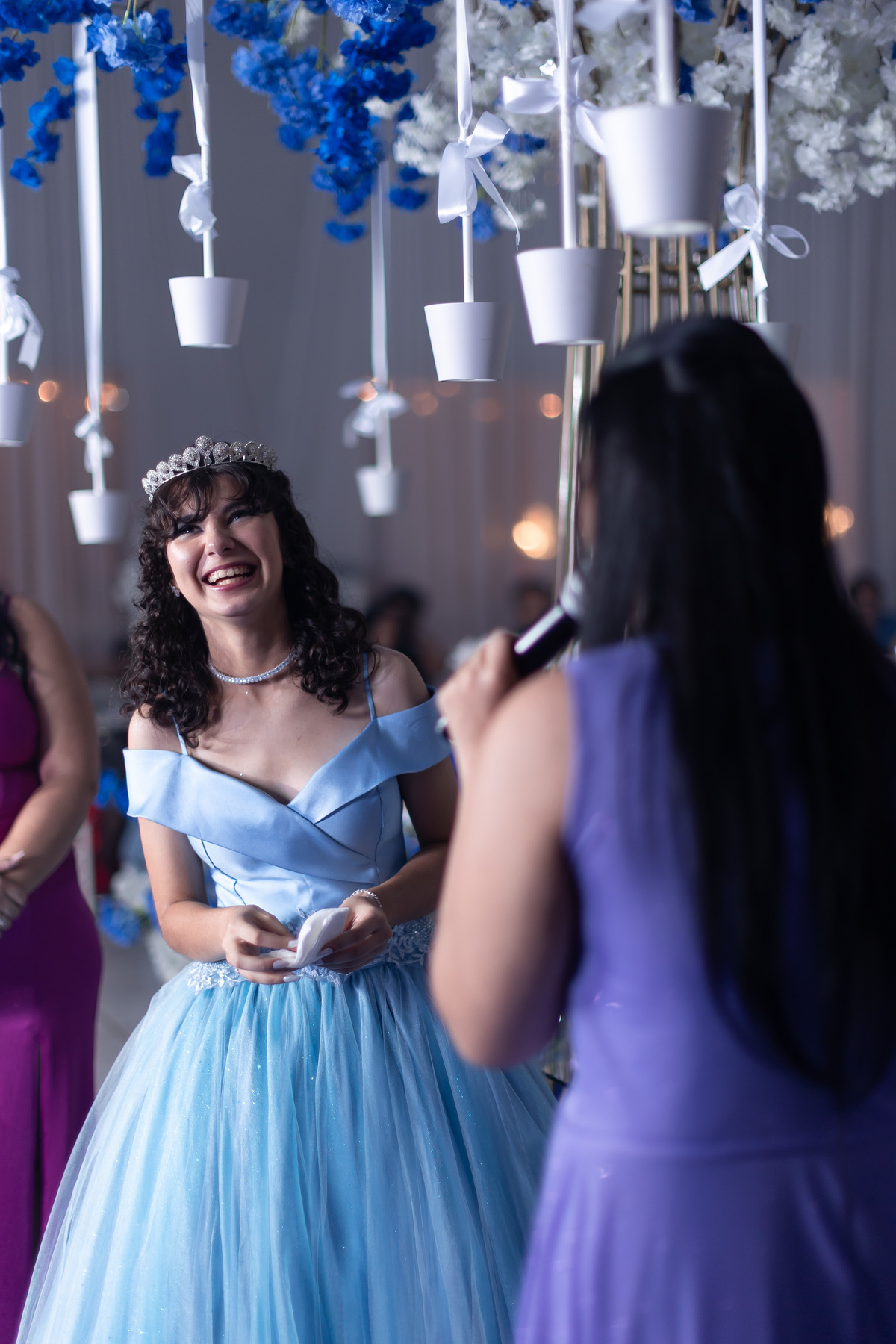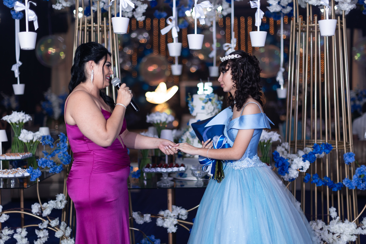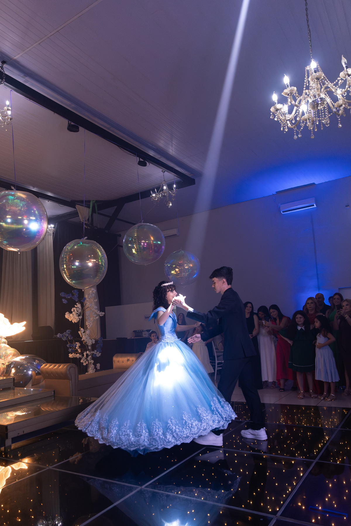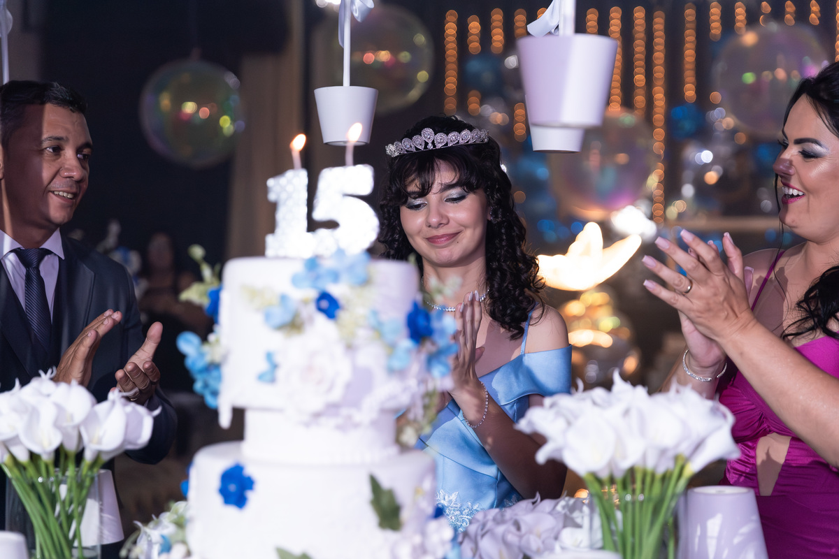 A celebração foi encantadora, rica em detalhes e com um clima acolhedor que envolvia todos os presentes. A família, extremamente amorosa e presente, transformou esse sonho em uma festa de 15 anos inesquecível, marcada por conexão, alegria e significado.