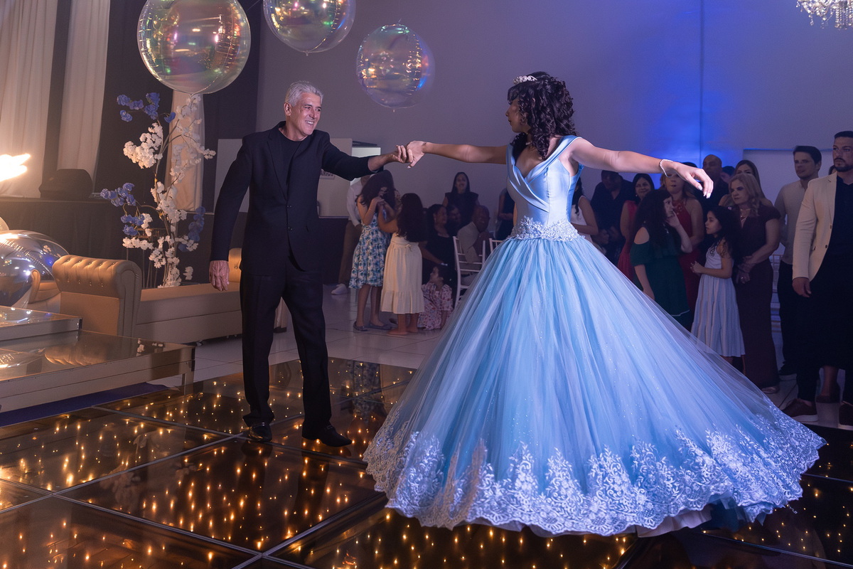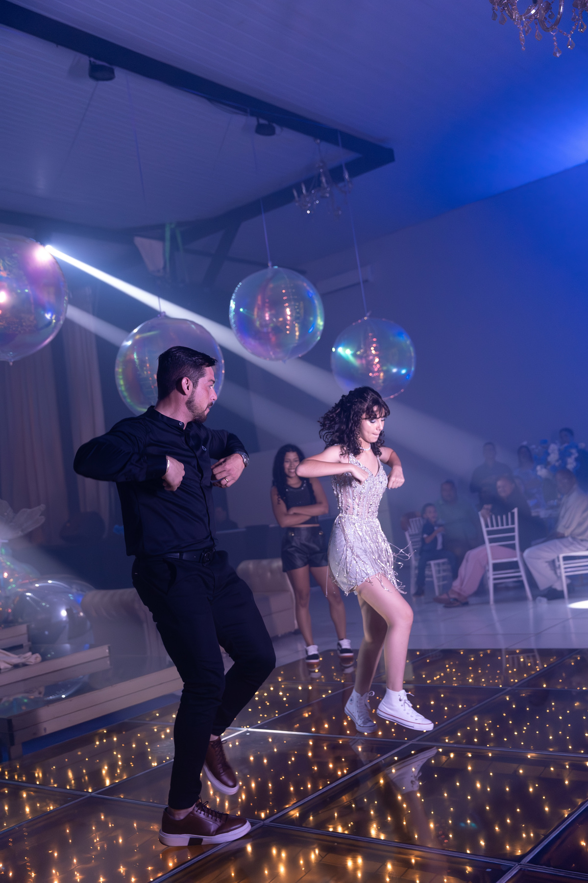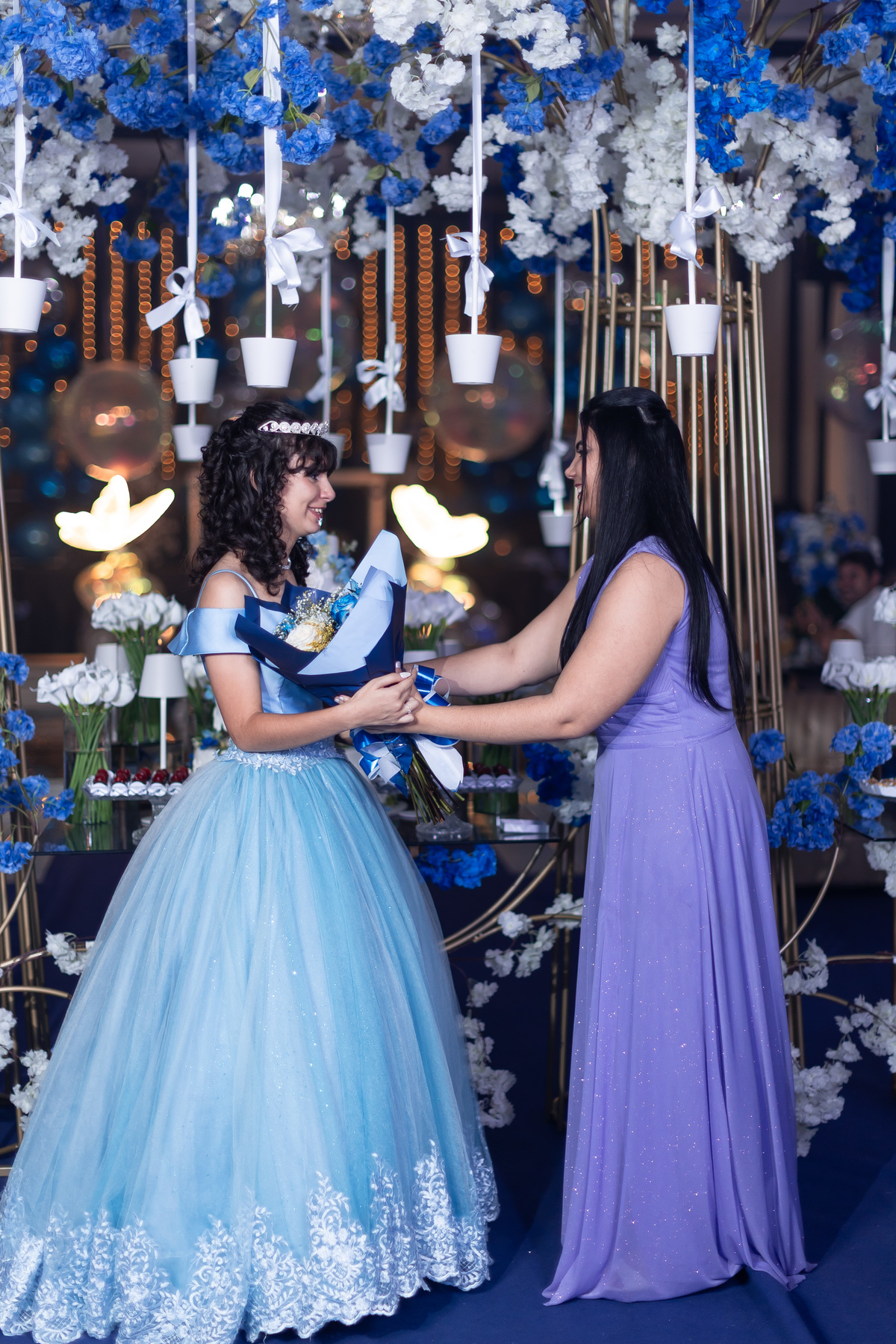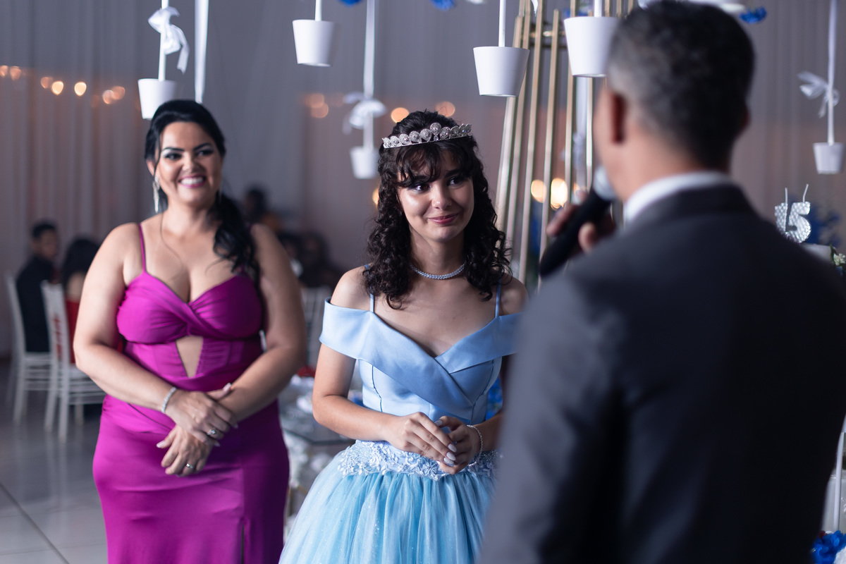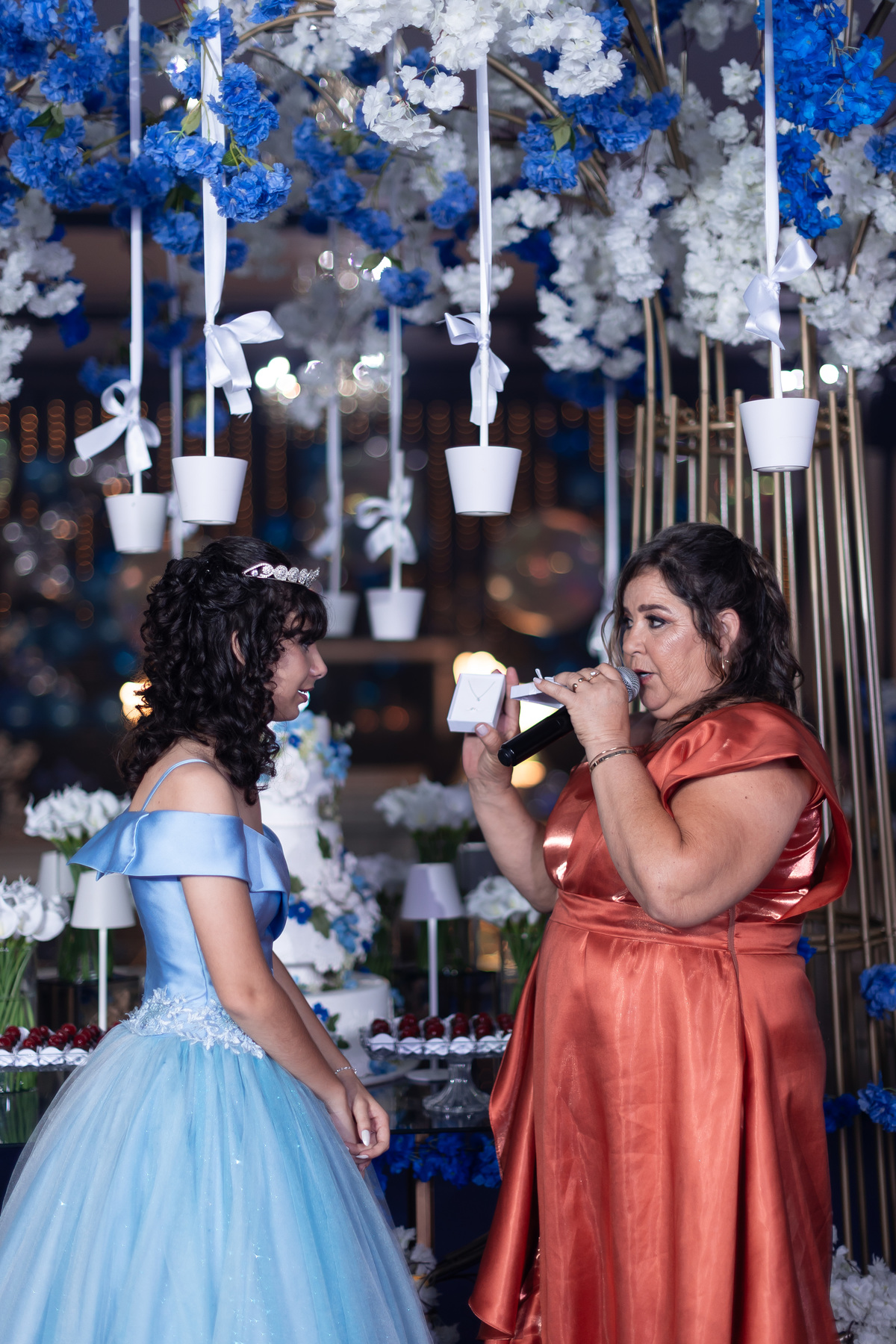A celebração foi encantadora, rica em detalhes e com um clima acolhedor que envolvia todos os presentes. A família, extremamente amorosa e presente, transformou esse sonho em uma festa de 15 anos inesquecível, marcada por conexão, alegria e significado.