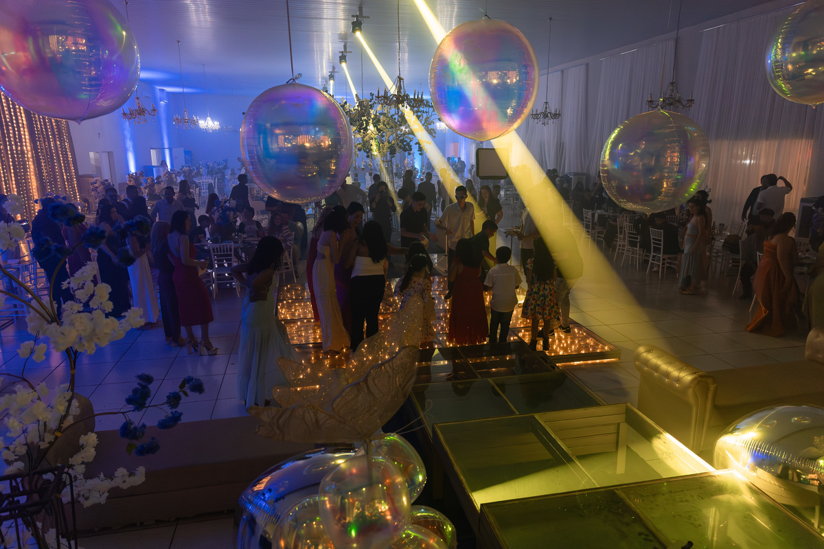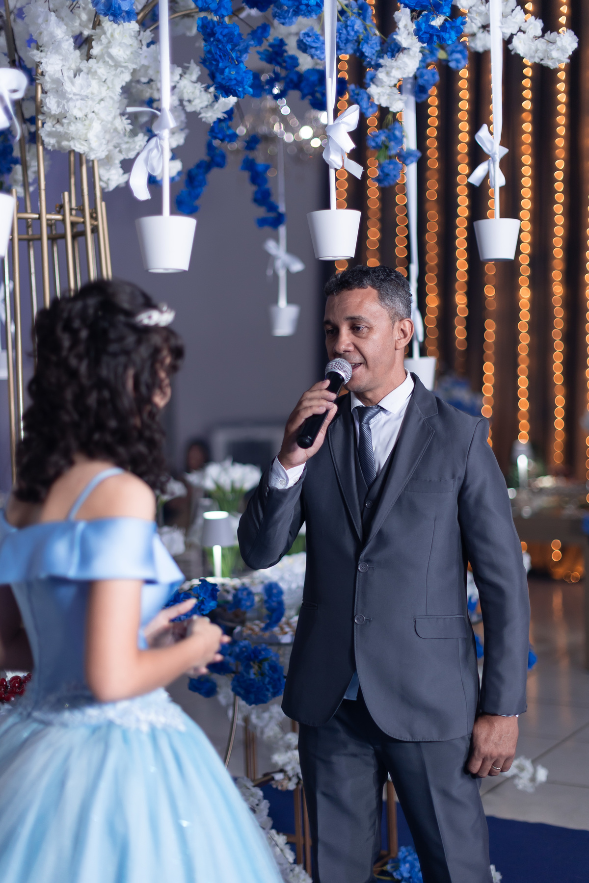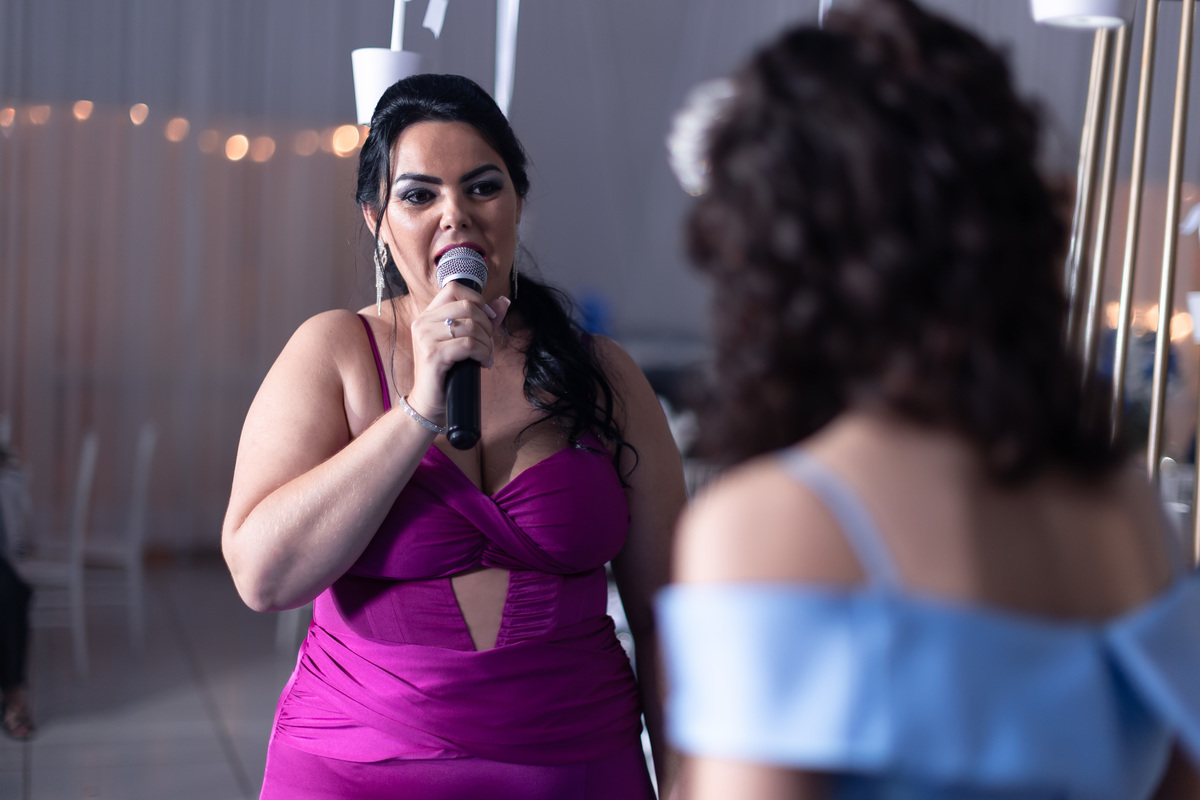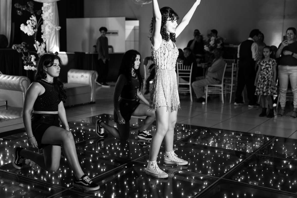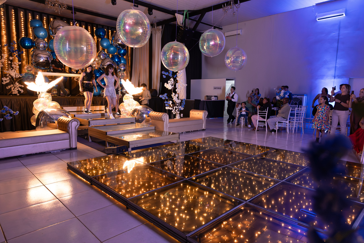 A celebração foi encantadora, rica em detalhes e com um clima acolhedor que envolvia todos os presentes. A família, extremamente amorosa e presente, transformou esse sonho em uma festa de 15 anos inesquecível, marcada por conexão, alegria e significado.