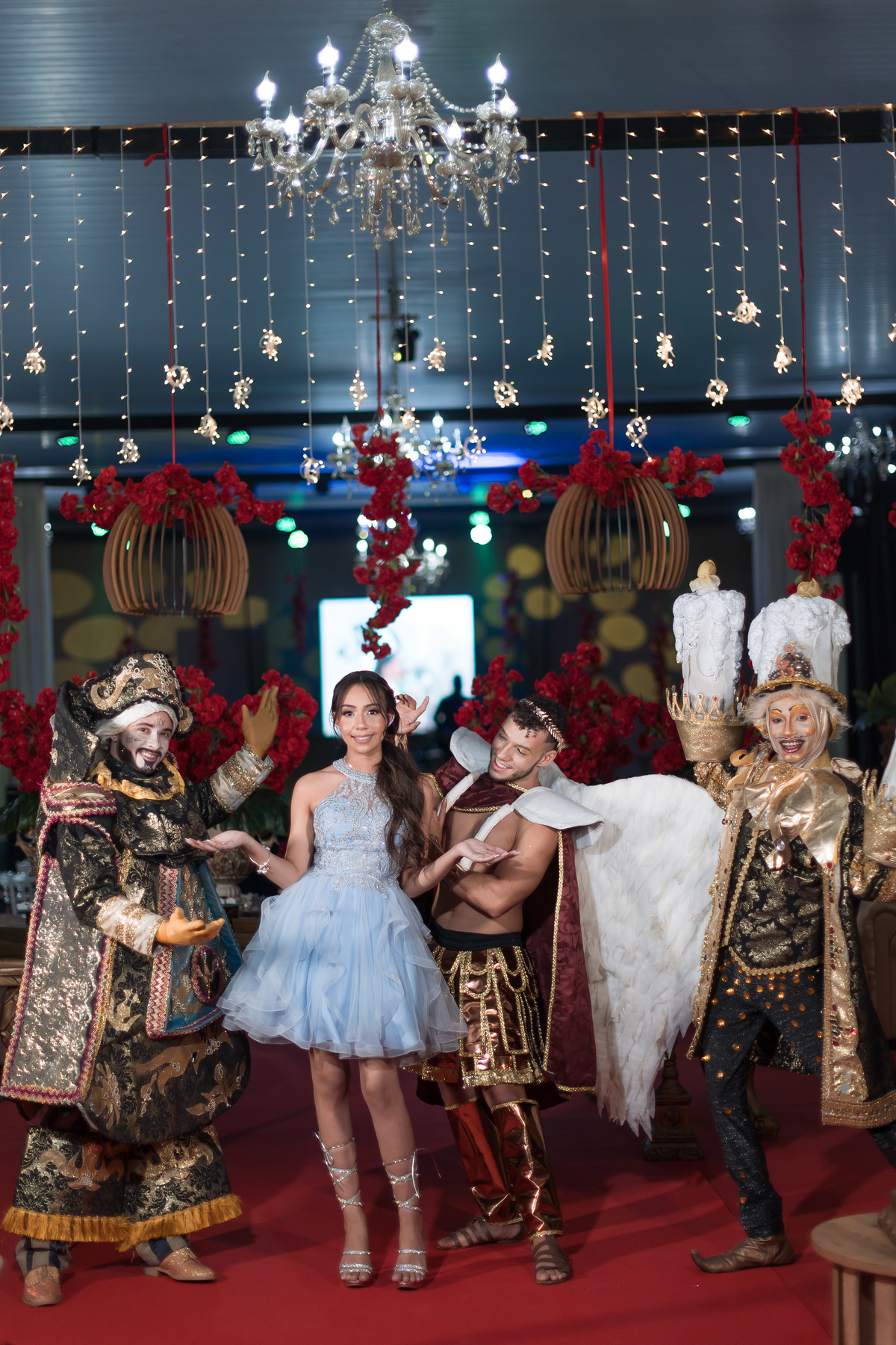 A decoração da WF Eventos temática encantou do início ao fim: príncipe, Fera, a icônica vela, o relógio e personagens que deram vida ao universo Disney. O cupido surpreendeu os convidados com cortesias, criando momentos únicos e interativos. Cada elemento foi pensado para transformar o aniversário de 15 anos em uma experiência imersiva e memorável.