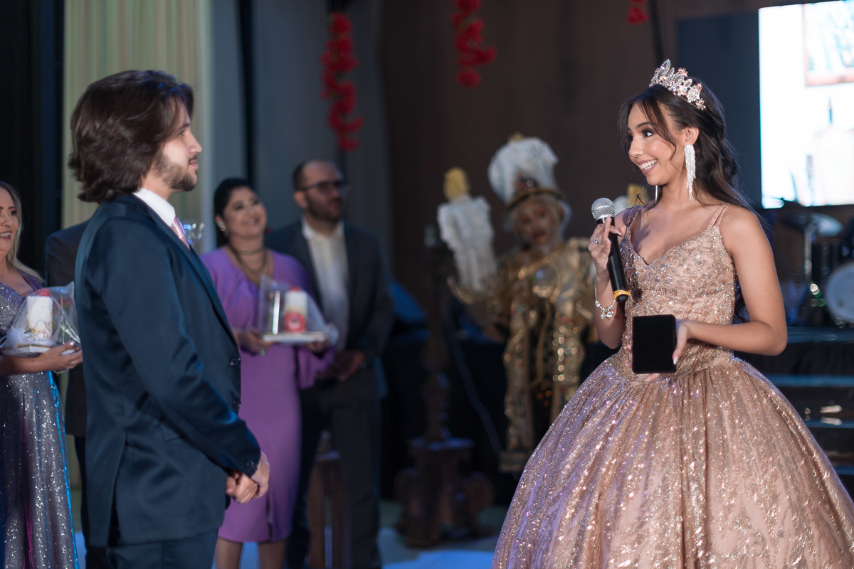 E no centro de tudo, Tayla brilhou como uma verdadeira princesa. Seu vestido, sua presença e sua energia traduziram perfeitamente o significado desse momento tão especial na vida de uma debutante.